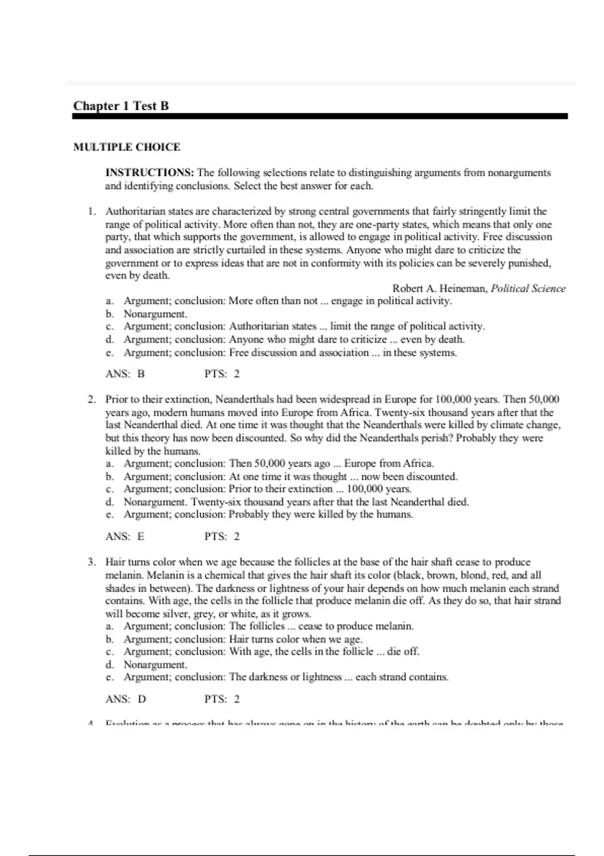 INSTRUCTIONS: The following selections relate to distinguishing arguments from nonarguments