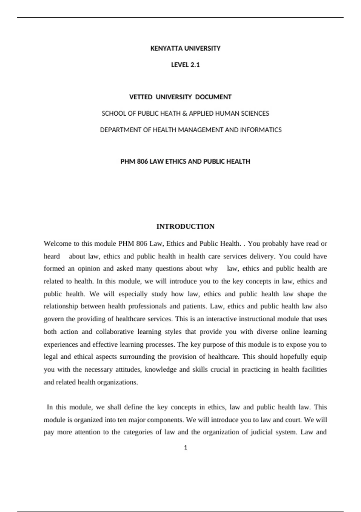 Welcome to this module PHM 806 Law, Ethics and Public Health. . You probably have read or