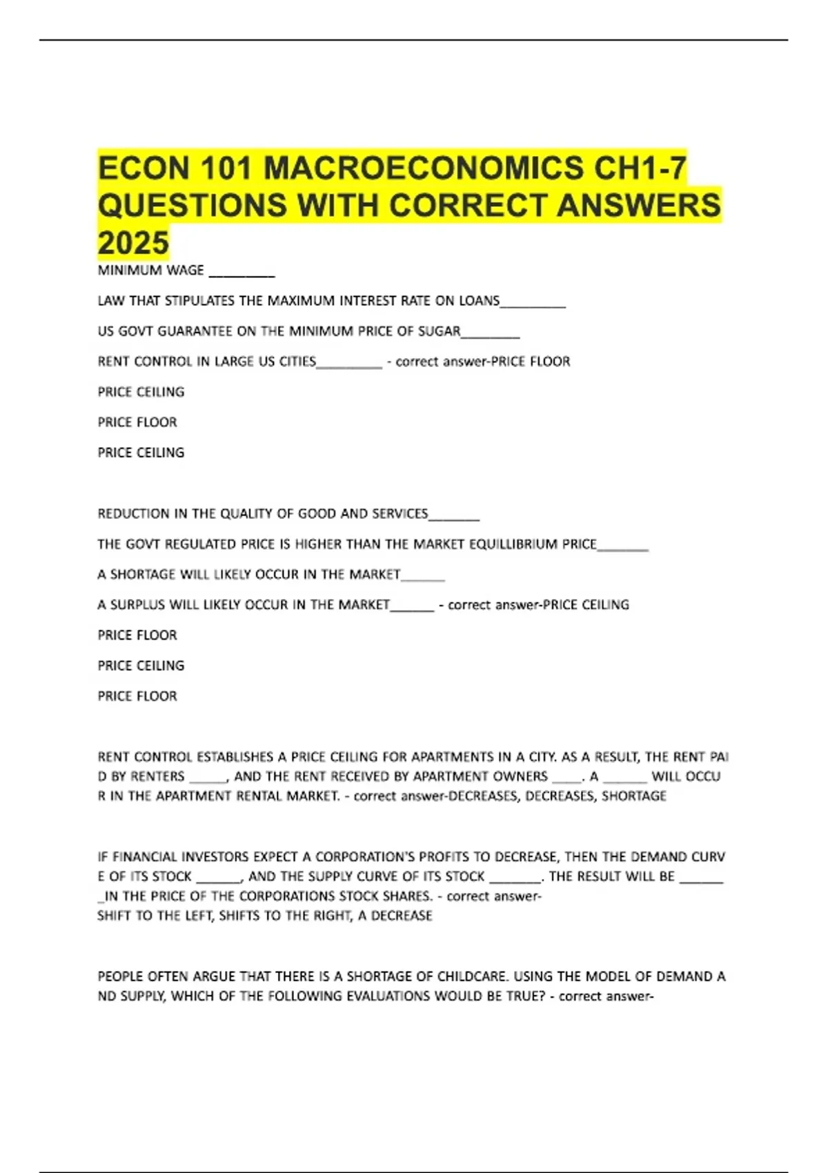 ECON 101 MACROECONOMICS CH1-7 QUESTIONS WITH CORRECT ANSWERS