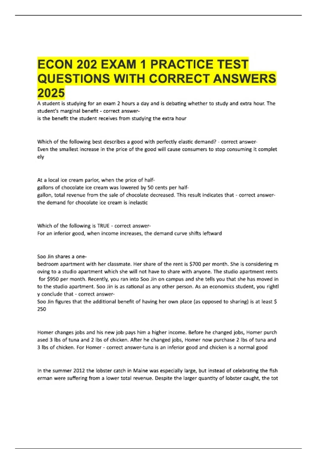 ECON 202 EXAM 1 PRACTICE TEST QUESTIONS WITH CORRECT ANSWERS