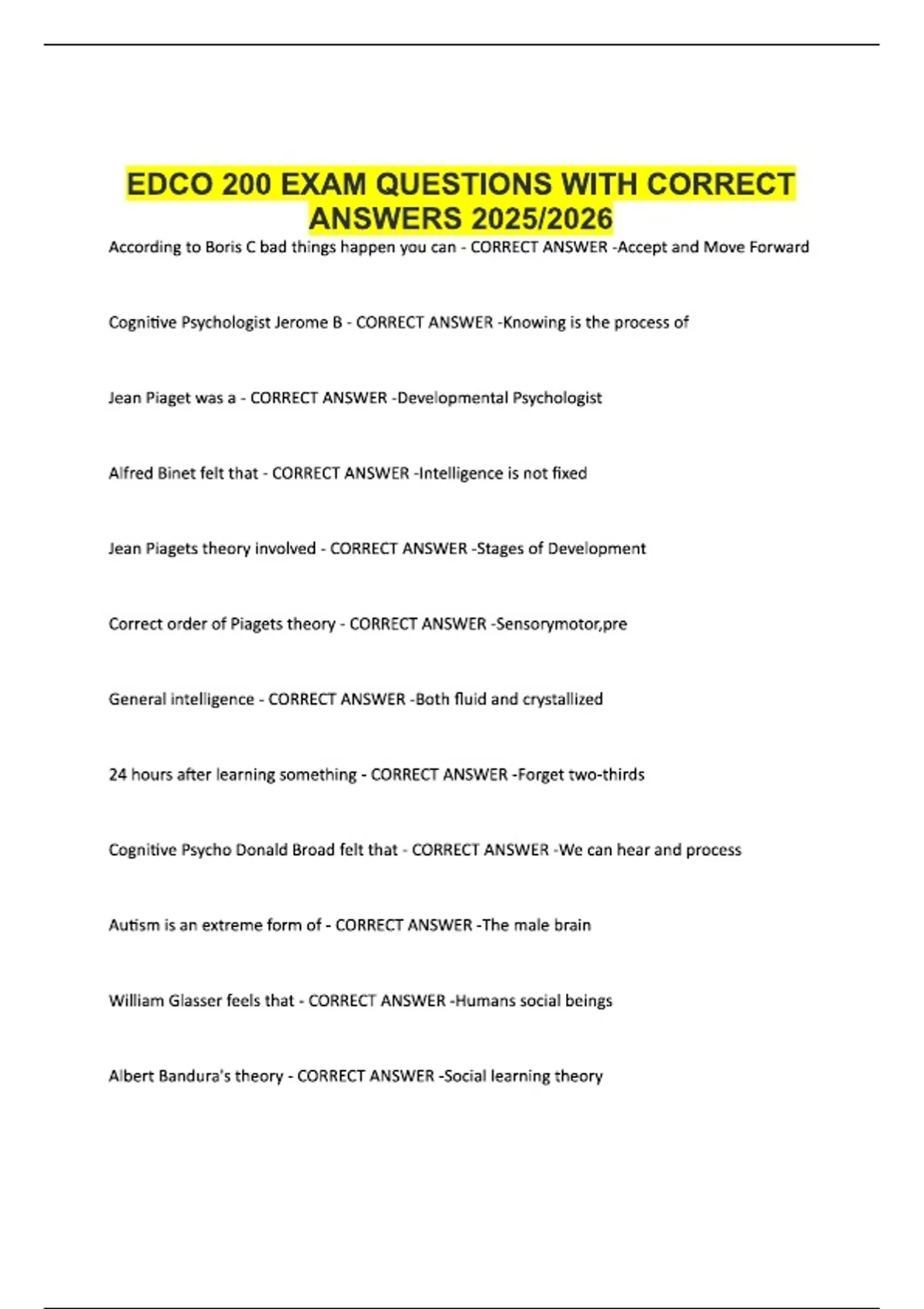 EDCO 200 EXAM QUESTIONS WITH CORRECT ANSWERS