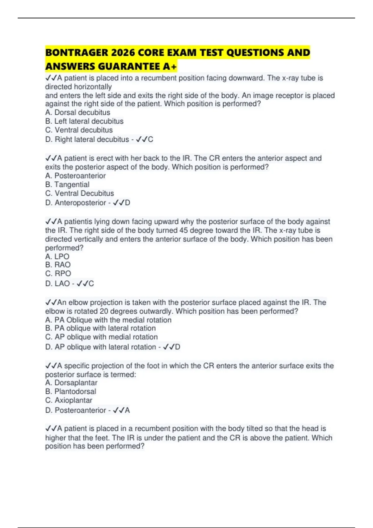 D. Right lateral decubitus - ✔✔C