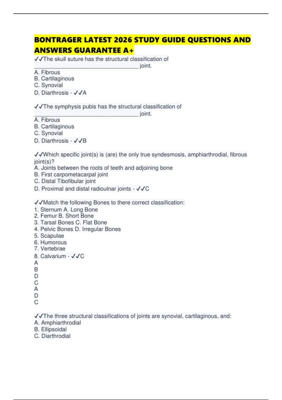 D. Diarthrosis - ✔✔A