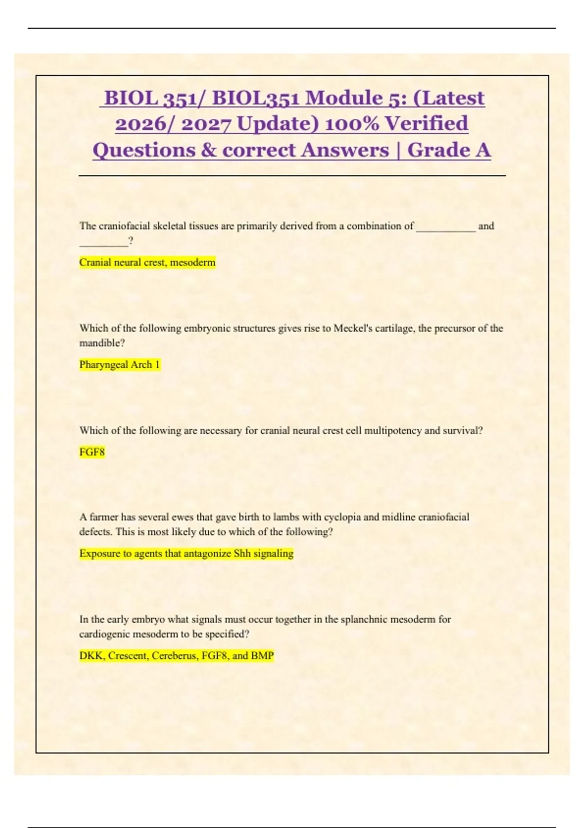 , BIOL 351/ BIOL351 Module 5: (Latest