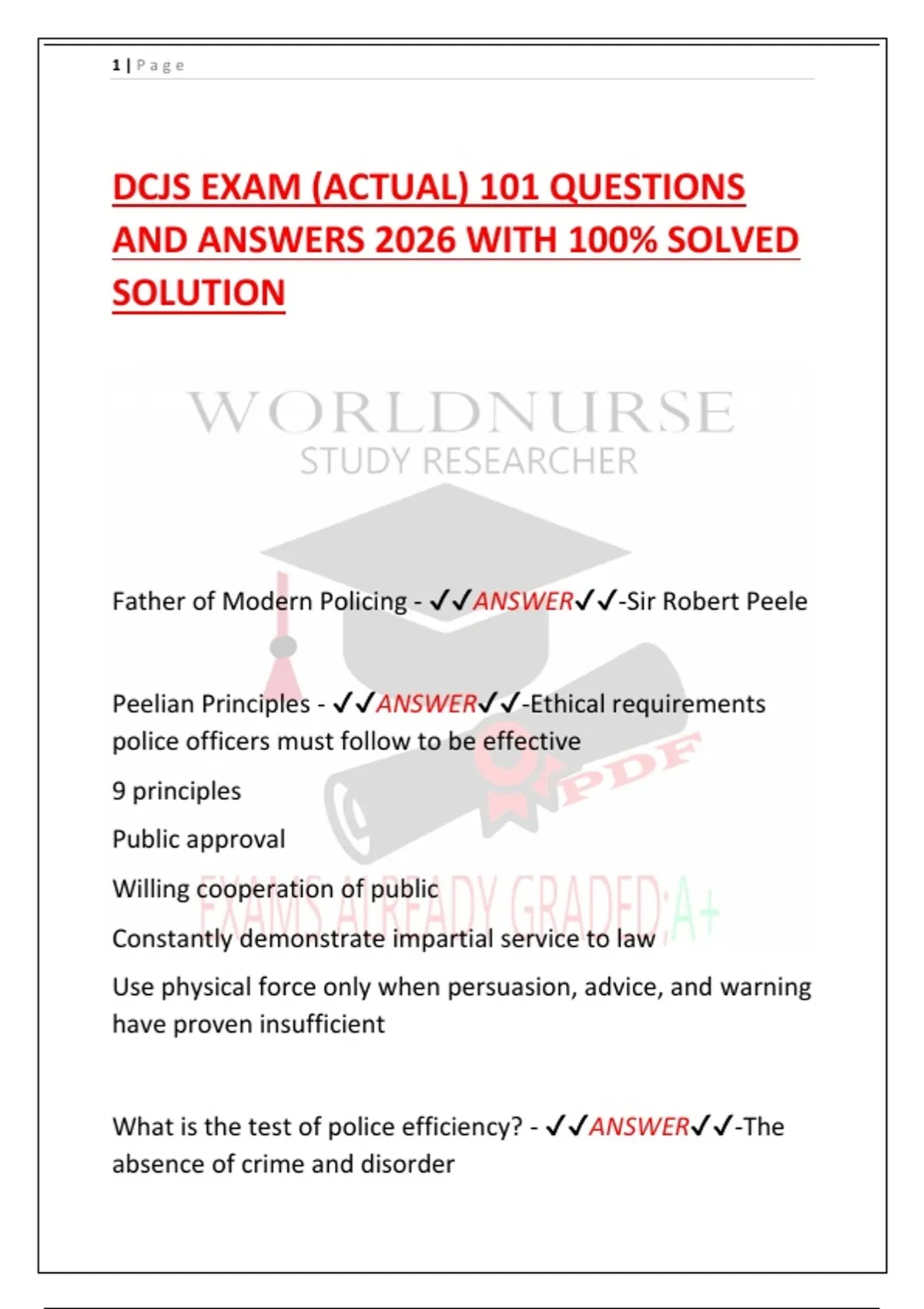 Father of Modern Policing - ✔✔ANSWER✔✔-Sir Robert Peele
