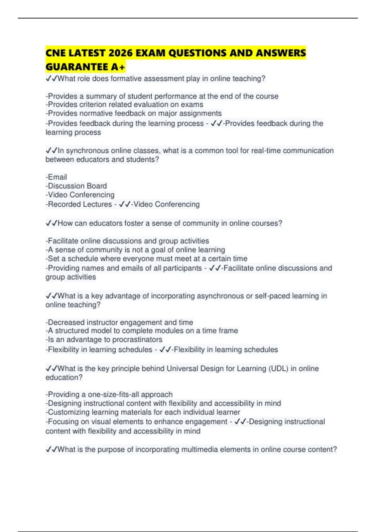 ✔✔What is the key principle behind Universal Design for Learning (UDL) in online