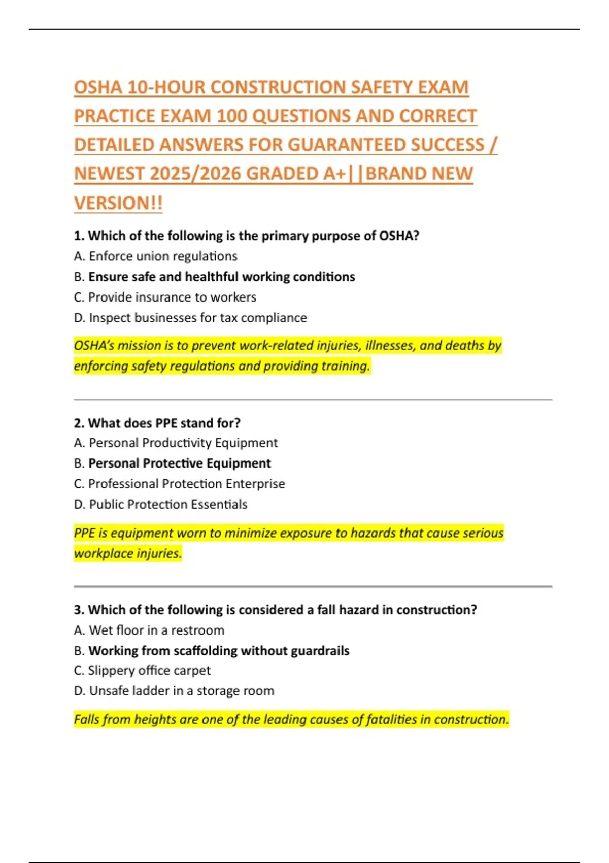 OSHA 10-HOUR CONSTRUCTION SAFETY EXAM
