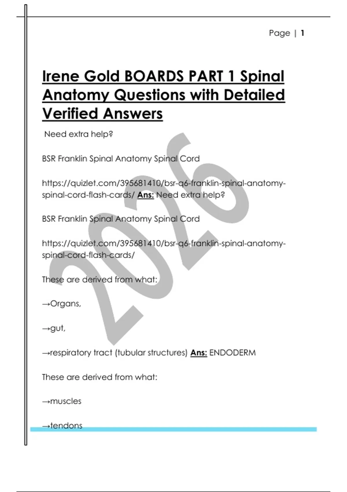 Irene Gold BOARDS PART 1 Spinal Anatomy Questions with Detailed Verified Answers