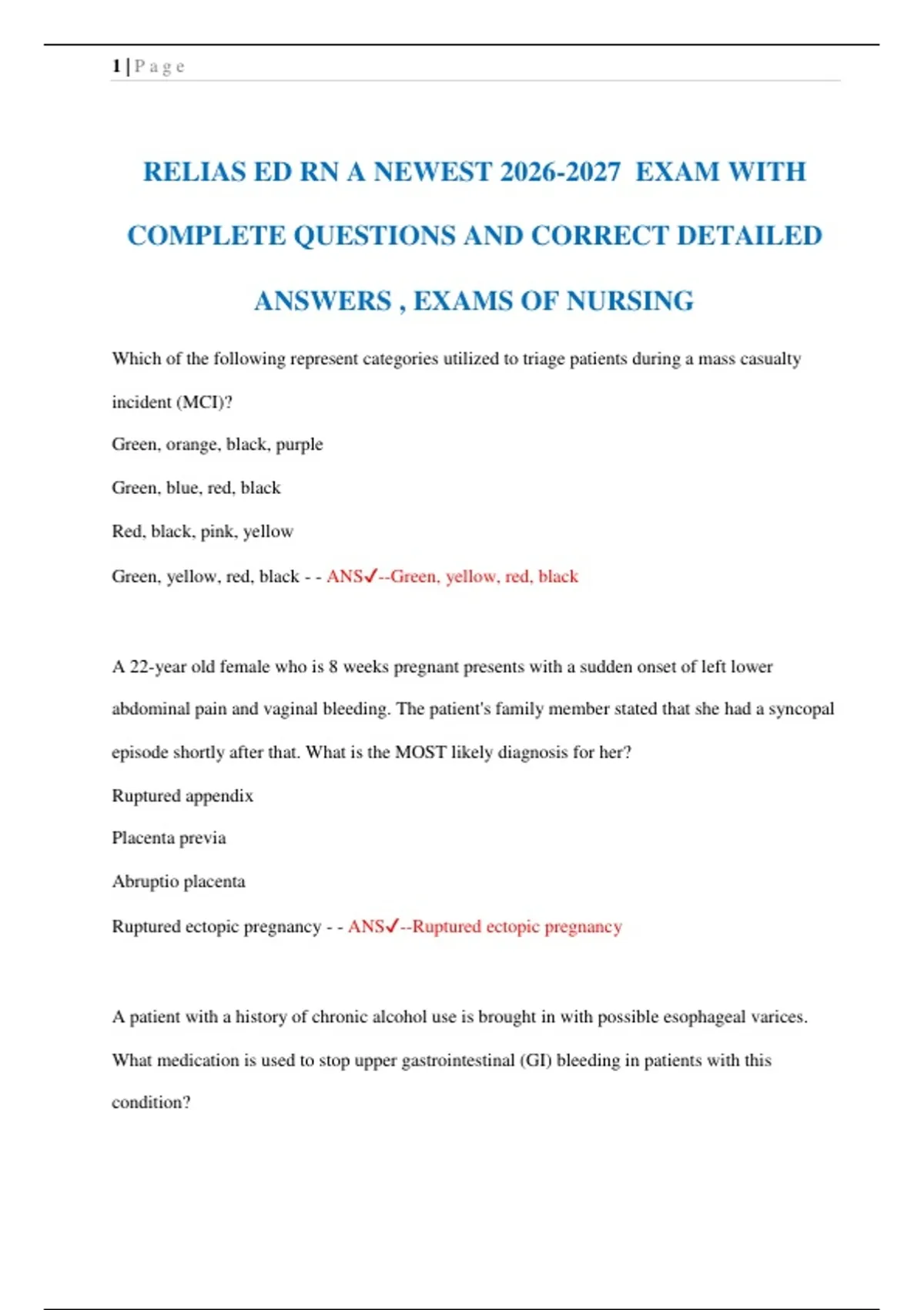 RELIAS ED RN A NEWEST 2026-2027 EXAM WITH