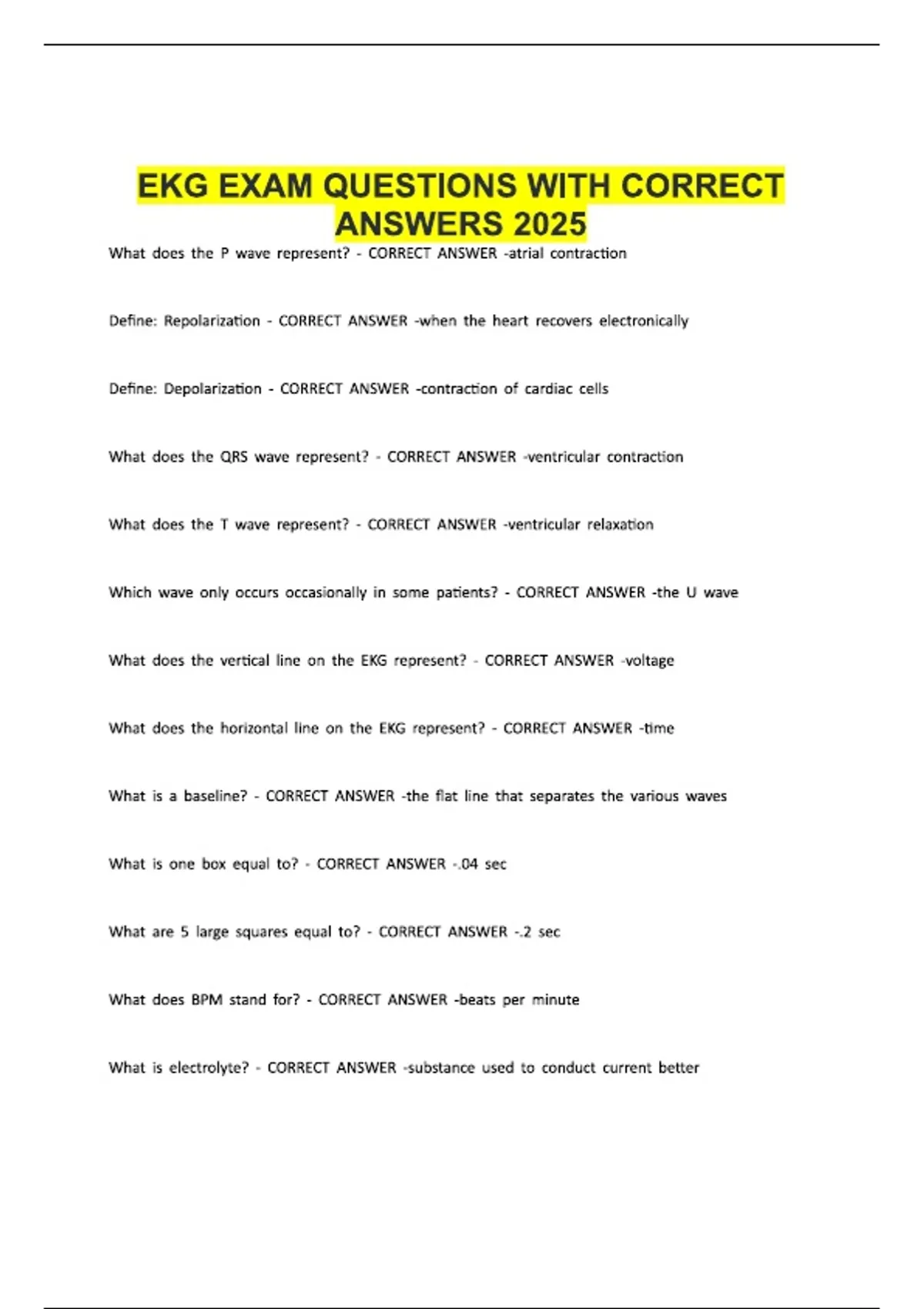 EKG EXAM QUESTIONS WITH CORRECT ANSWERS