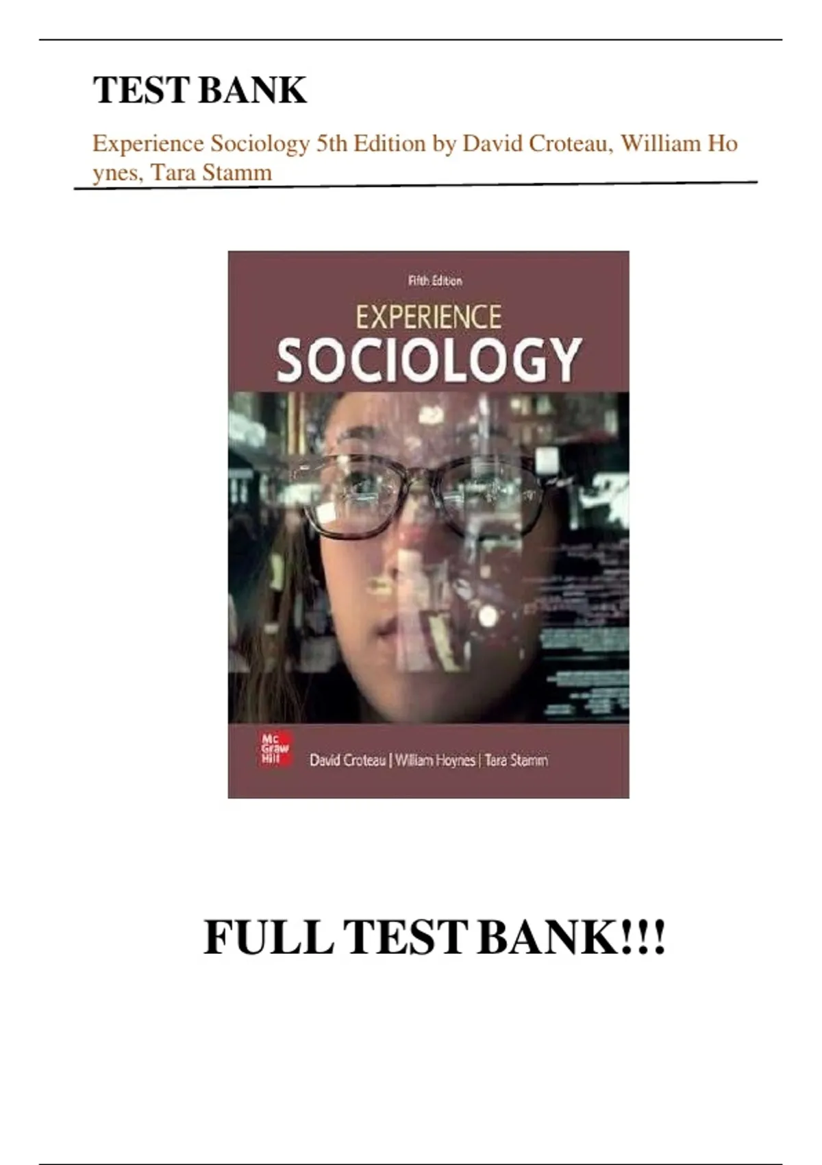 Ace your sociology exams with the ultimate study companion! This complete Test Bank for Experience Sociology, 5th Edition by David Croteau, William Hoynes, and Tara Stamm is your key to understanding complex concepts, testing your knowledge, and preparing effectively for quizzes, midterms, and finals. Inside, you’ll find hundreds of practice questions—multiple-choice and true/false—covering all essential chapters: Chapter 1: Sociology in a Changing World – Explore the sociological perspective, key theorists, and the foundations of sociological thought. Chapter 2: Sociological Research – Learn research methods, ethics, and how sociologists gather and analyze data. Chapter 3: Culture – Dive into material and nonmaterial culture, norms, values, symbols, and cultural diversity. Chapter 4: Social Structure – Understand social institutions, roles, statuses, and how society organizes itself. Chapter 5: Power & Inequality – Examine social stratification, power dynamics, class systems, and inequality. Chapter 6: Socialization – Study how individuals learn culture, develop identity, and navigate life stages. Chapter 7: Social Interaction & Groups – Analyze everyday interactions, group behavior, networks, and organizations. Chapter 8: Deviance & Social Control – Investigate what defines deviance, theories of deviance, crime, and social responses. Chapter 9: Class & Global Inequality – Tackle economic inequality, poverty, social mobility, and global stratification. Chapter 10: Race & Ethnicity – Confront racial and ethnic categories, prejudice, discrimination, and social construction of race. Each chapter includes a detailed answer key to check your understanding and track your progress. Whether you're reviewing for an exam, writing a paper, or strengthening your grasp of sociology, this test bank is an invaluable resource for students, instructors, and self-learners. Don’t just study—succeed. Get your copy today and step into your sociology exams with confidence!