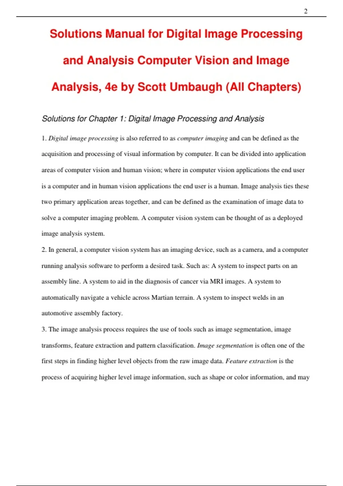 Solutions Manual for Digital Image Processing and Analysis Computer Vision and Image Analysis, 4th Edition by Scott Umbaugh All Chapters 1 to 7 complete Verified editon ISBN: 9781000788518 Solutions Manual for Digital Image Processing and Analysis Computer Vision and Image Analysis, 4th Edition by Scott Umbaugh All Chapters 1 to 7 complete Verified editon ISBN: 9781000788518