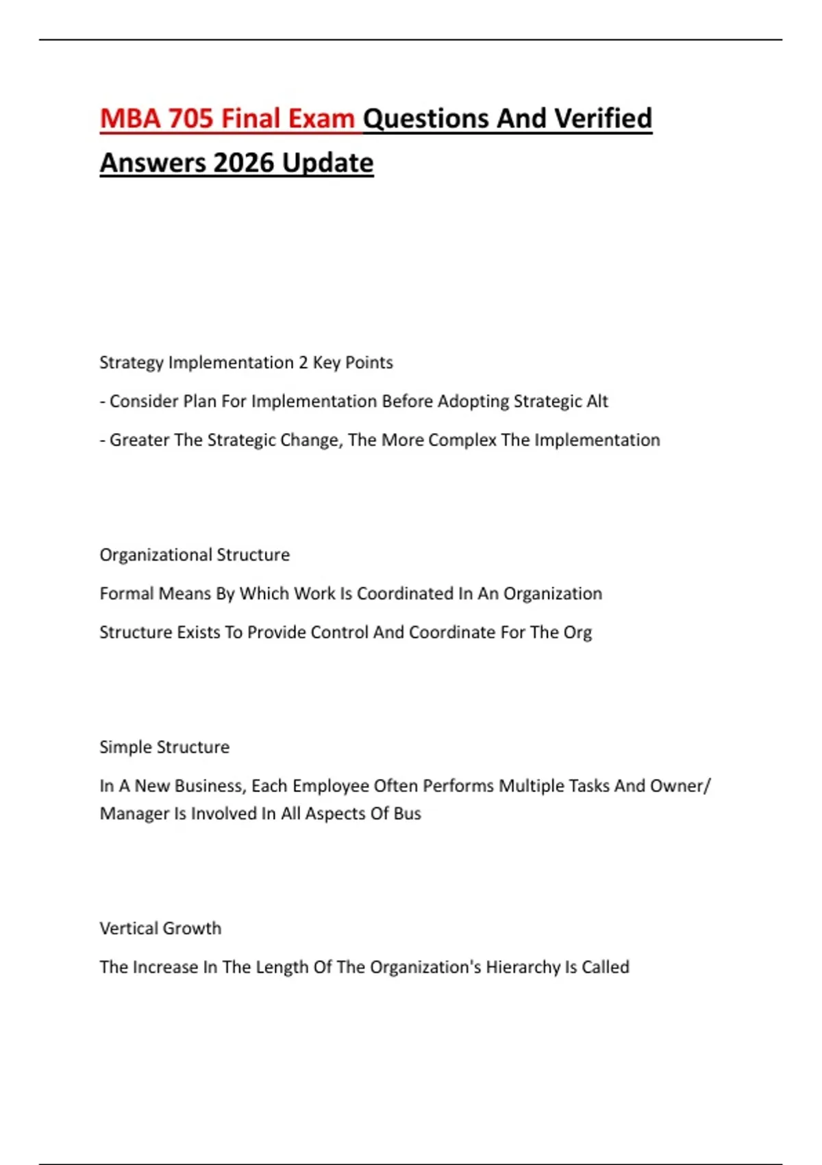 MBA 705 Final Exam Questions And Verified Answers 2026 Update