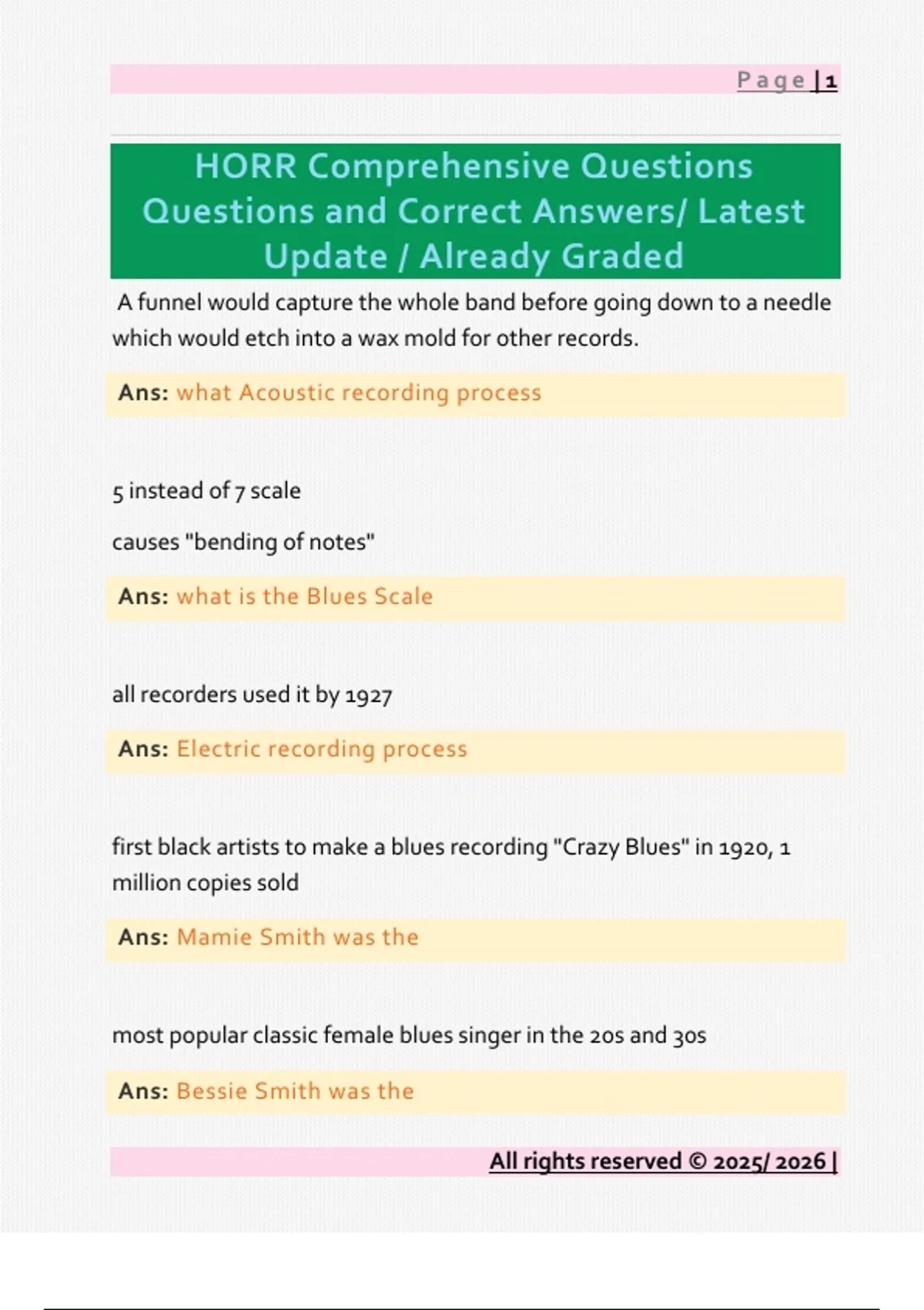 Questions and Correct Answers/ Latest