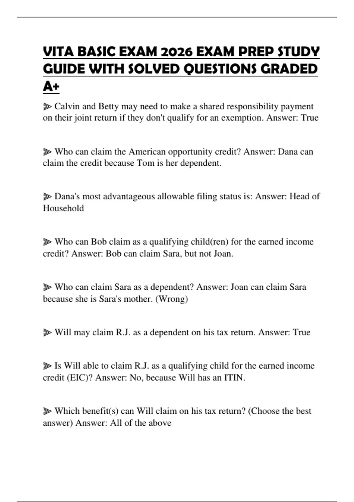 VITA BASIC EXAM 2026 EXAM PREP STUDY GUIDE WITH SOLVED QUESTIONS GRADED A+