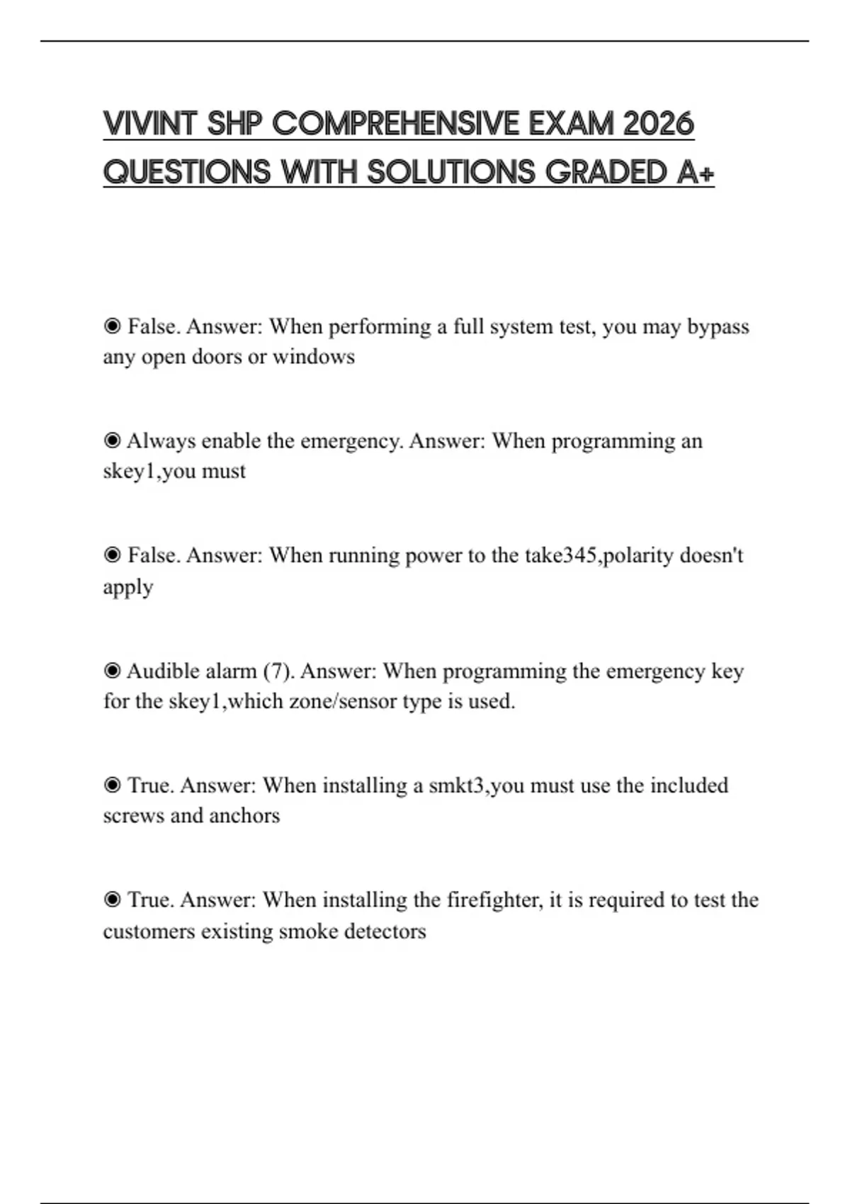 VIVINT SHP COMPREHENSIVE EXAM 2026 QUESTIONS WITH SOLUTIONS GRADED A+