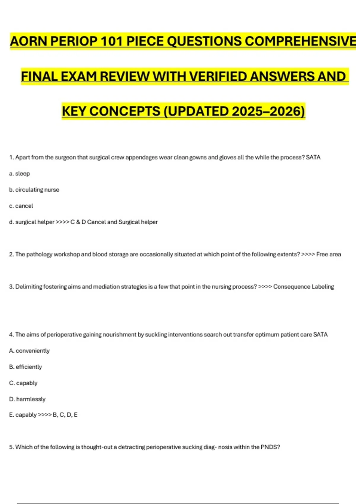 AORN PERIOP 101 PIECE QUESTIONS COMPREHENSIVE