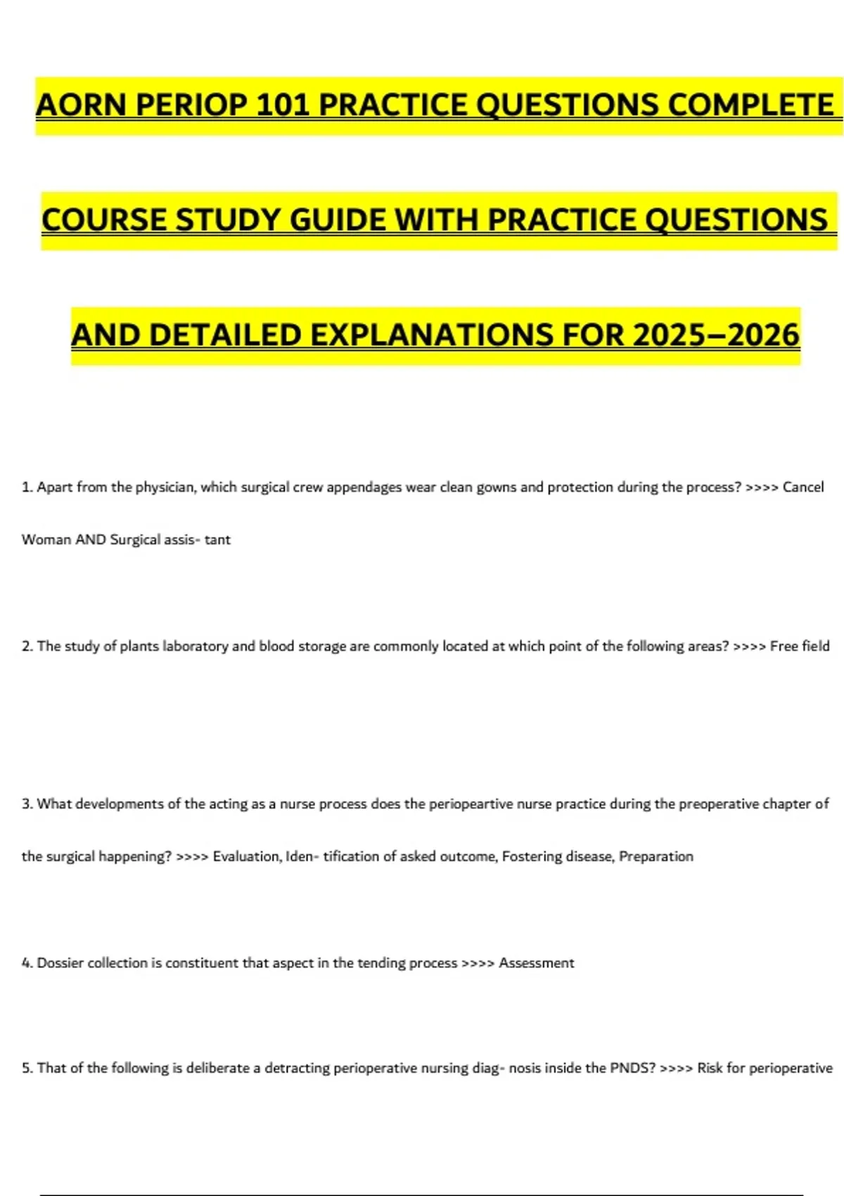 AORN PERIOP 101 PRACTICE QUESTIONS COMPLETE