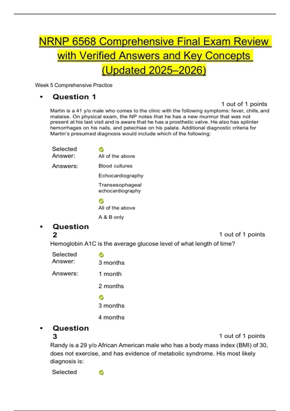 NRNP 6568 Comprehensive Final Exam Review