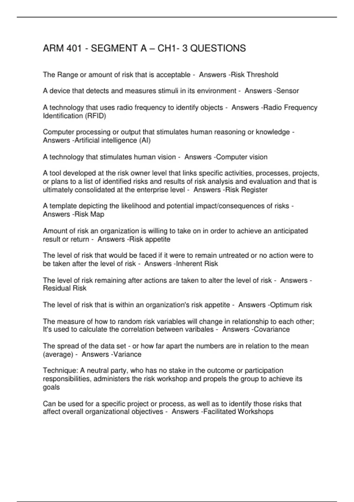 ARM 401 - SEGMENT A – CH1- 3 QUESTIONS
