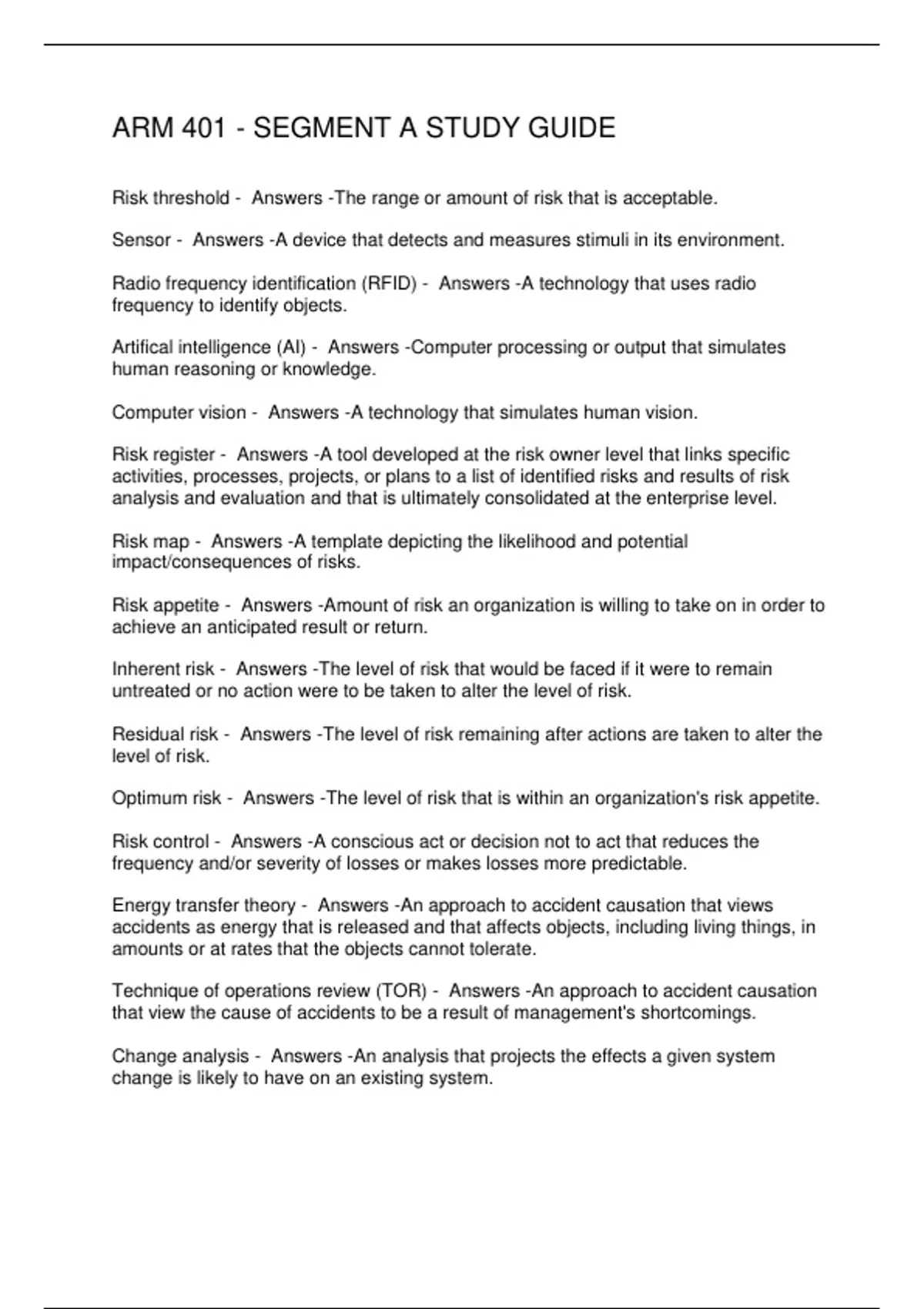 Risk register - Answers -A tool developed at the risk owner level that links specific