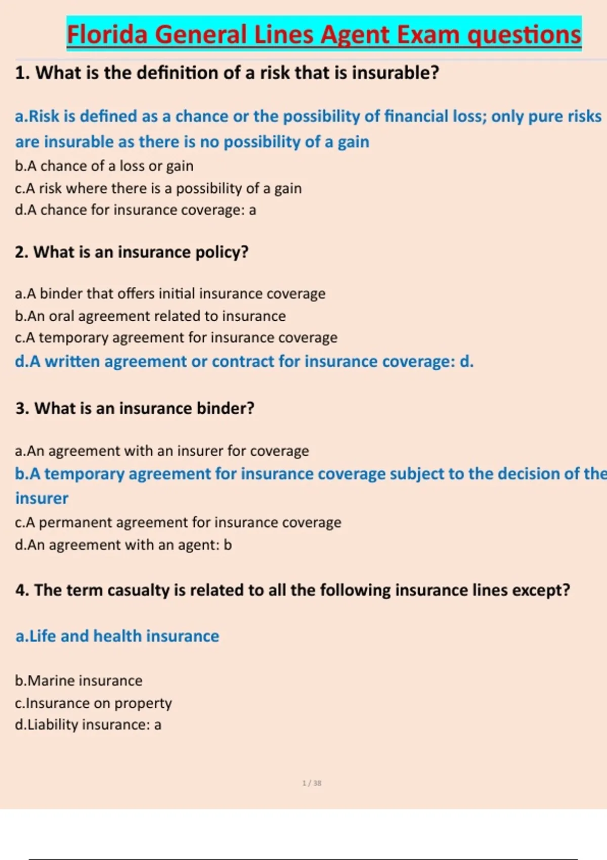 a.Risk is defined as a chance or the possibility of financial loss; only pure risks