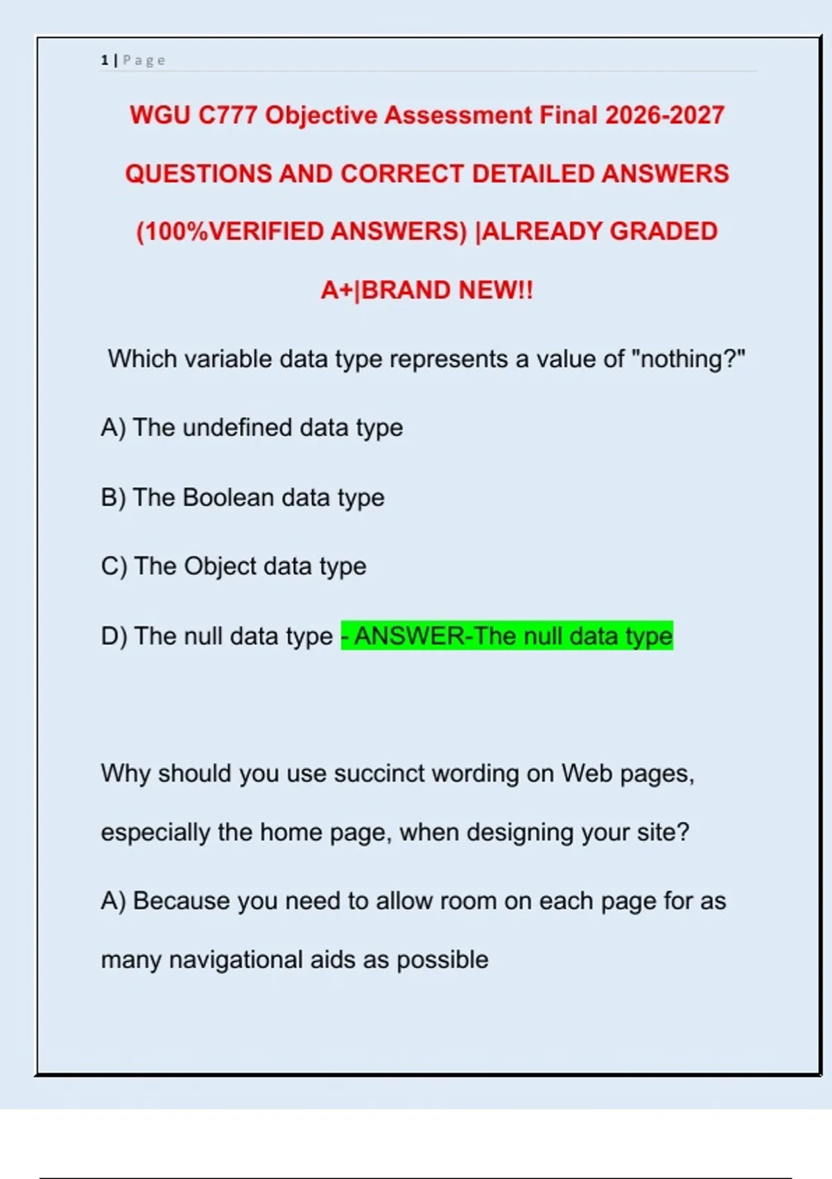 WGU C777 Objective Assessment Final QUESTIONS AND CORRECT DETAILED ANSWERS (100%VERIFIED ANSWERS) |ALREADY GRADED A+|BRAND NEW!!