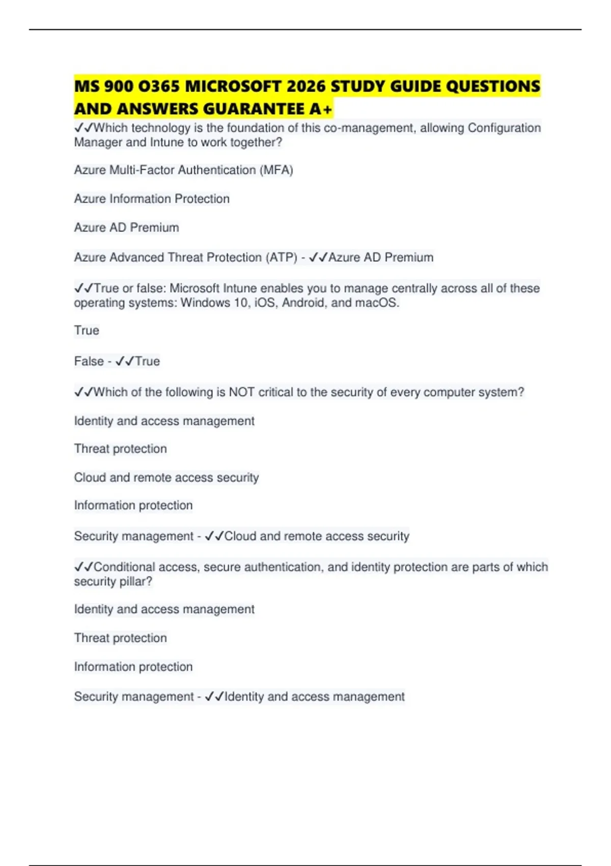 MS 900 O365 MICROSOFT 2026 STUDY GUIDE QUESTIONS AND ANSWERS GUARANTEE A.pdf