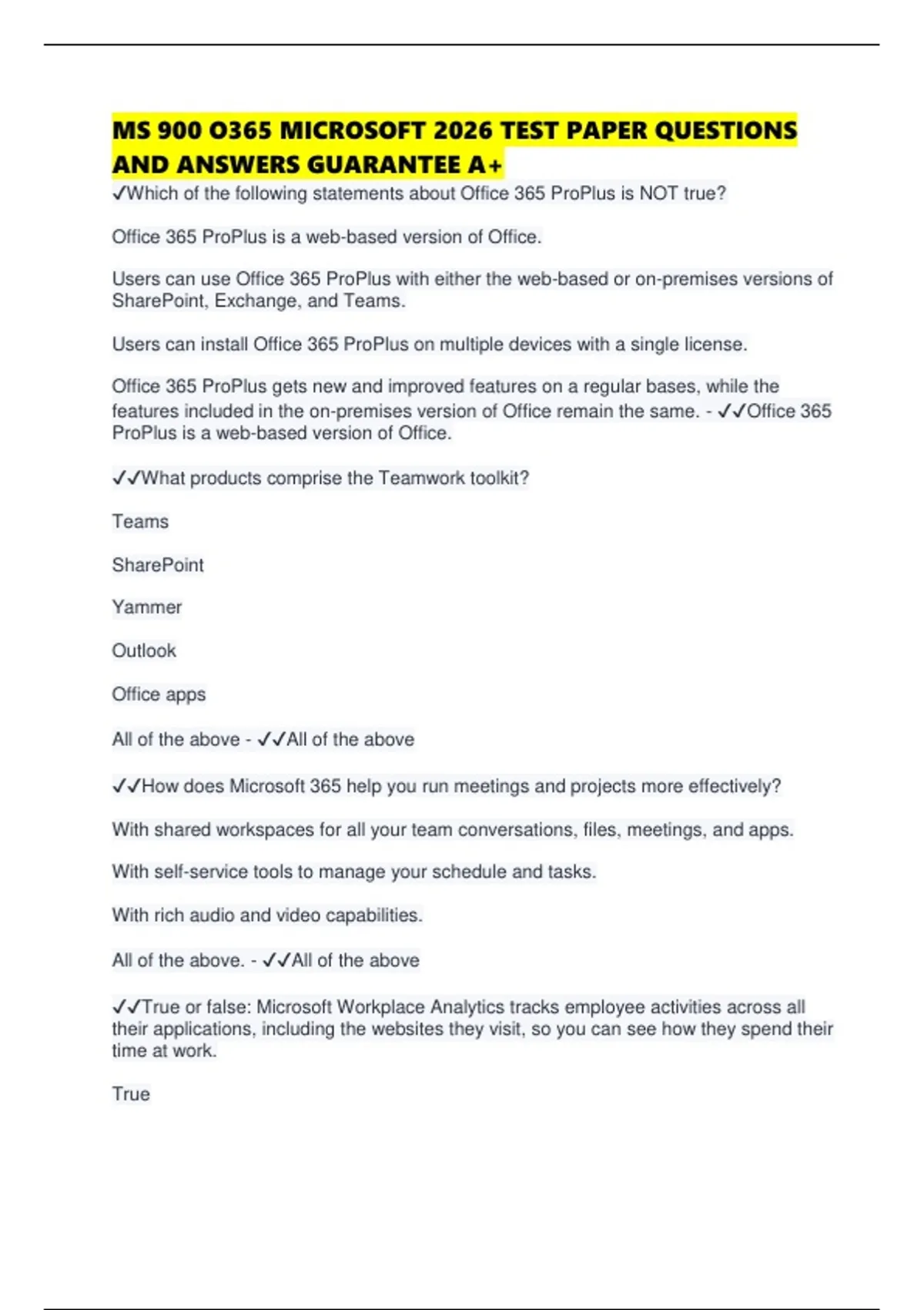 MS 900 O365 MICROSOFT 2026 TEST PAPER QUESTIONS AND ANSWERS GUARANTEE A+