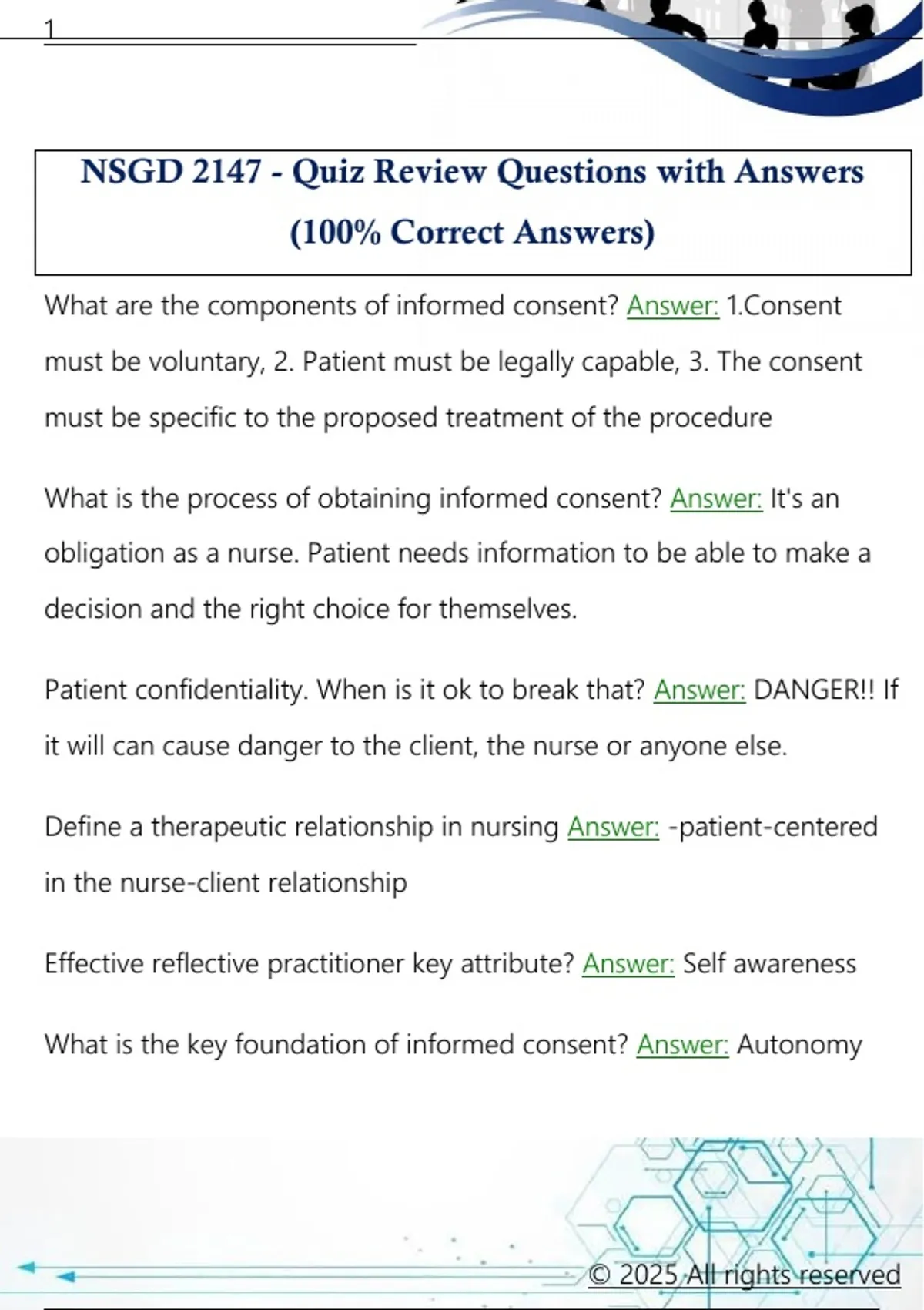 NSGD 2147 - Quiz Review Questions with Answers (100% Correct Answers)NSGD 2147 - Quiz Review Questions with Answers (100% Correct Answers)NSGD 2147 - Quiz Review Questions with Answers (100% Correct Answers)