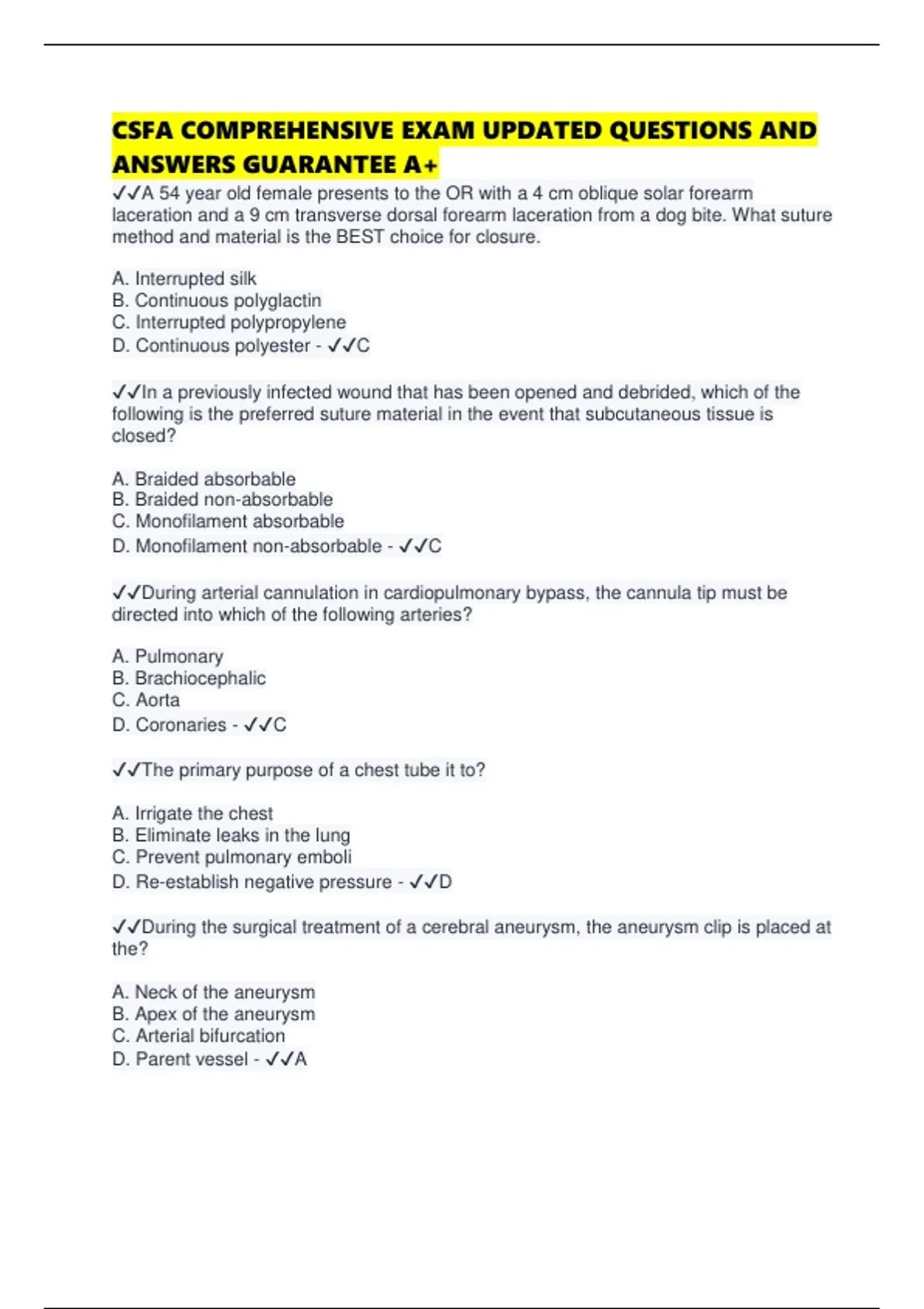 CSFA COMPREHENSIVE EXAM UPDATED QUESTIONS AND