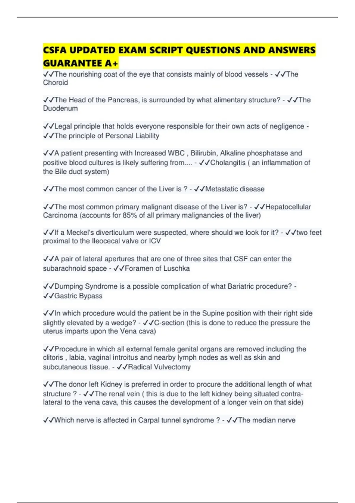 CSFA UPDATED EXAM SCRIPT QUESTIONS AND ANSWERS