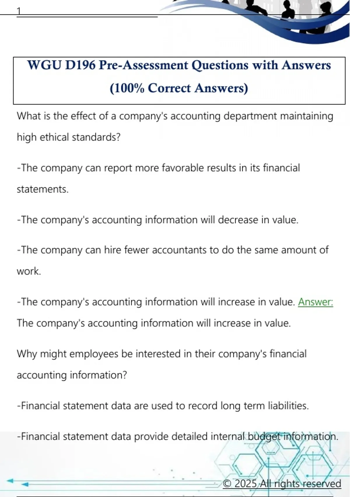 WGU D196 Pre-Assessment Questions with Answers (100% Correct Answers)