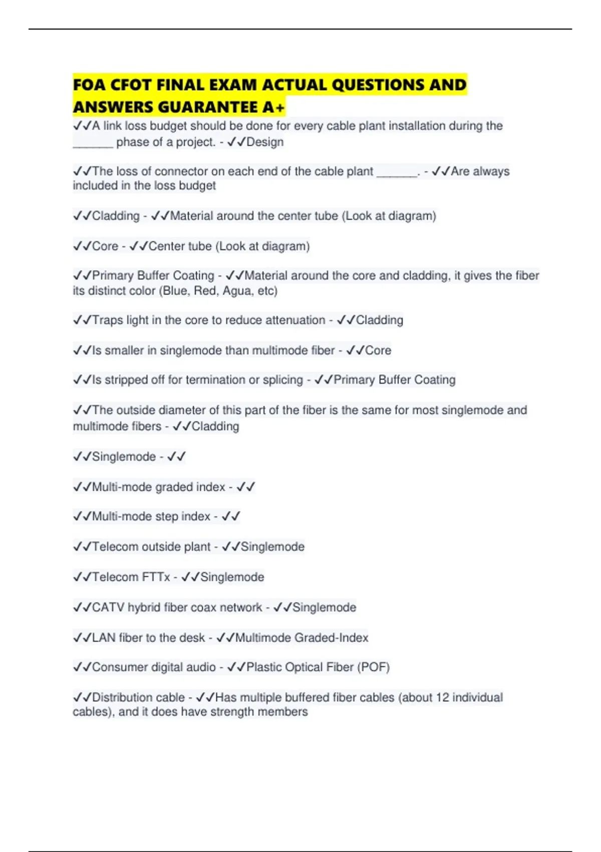 FOA CFOT FINAL EXAM ACTUAL QUESTIONS AND ANSWERS GUARANTEE A+