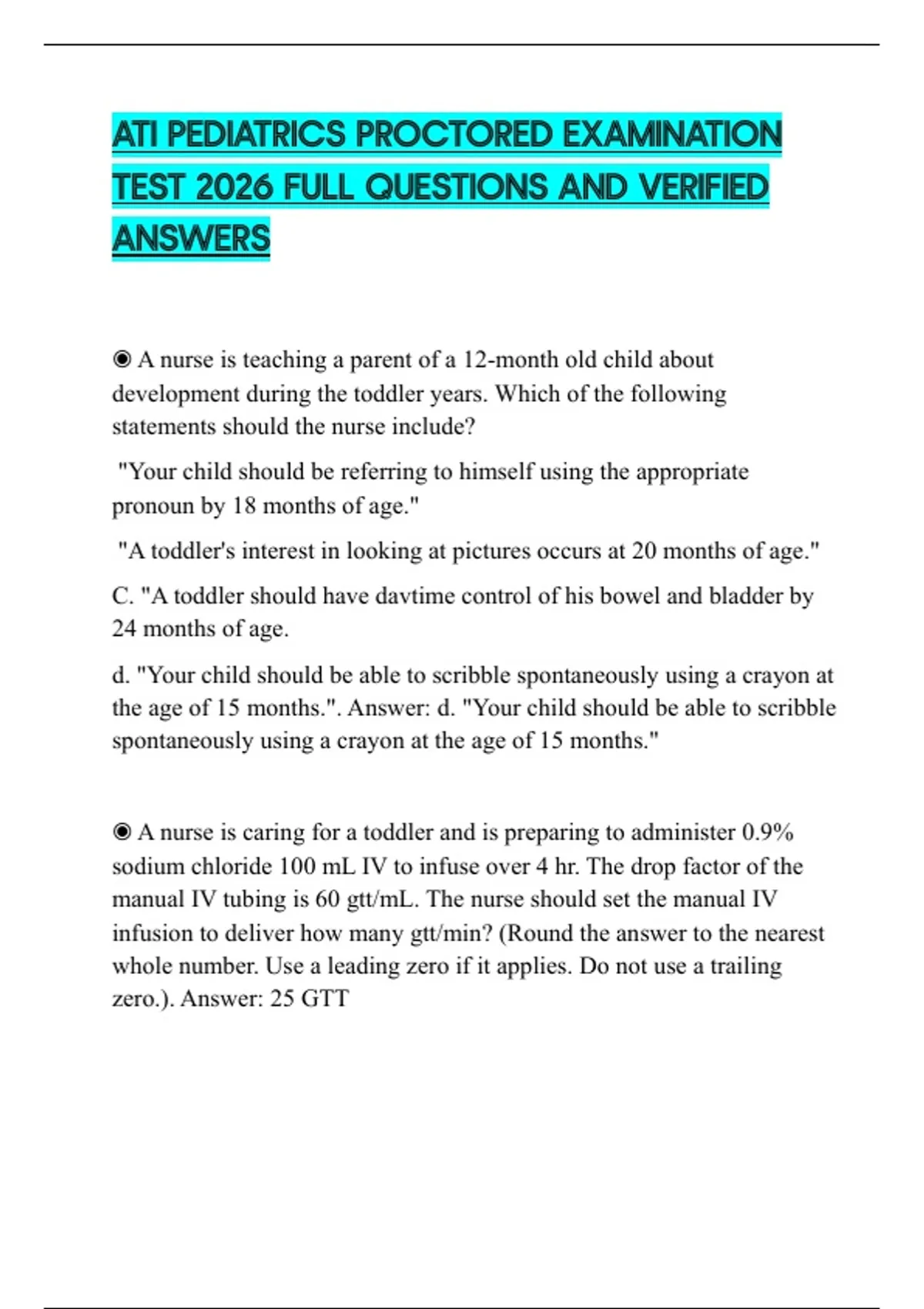 ATI PEDIATRICS PROCTORED EXAMINATION TEST 2026 FULL QUESTIONS AND VERIFIED ANSWERS