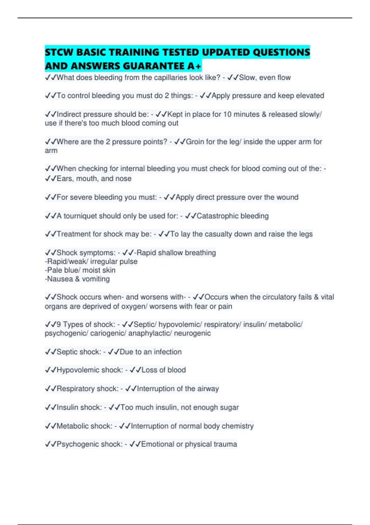 STCW BASIC TRAINING TESTED UPDATED QUESTIONS AND ANSWERS GUARANTEE A+