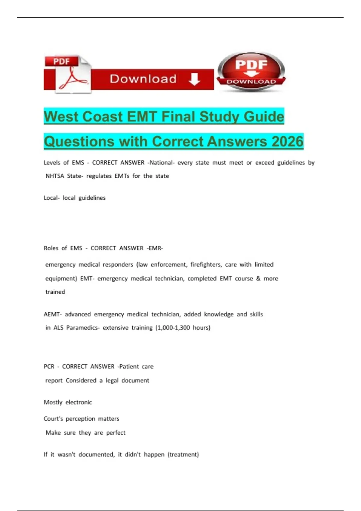 West Coast EMT Final Study Guide Questions with Correct Answers 2026