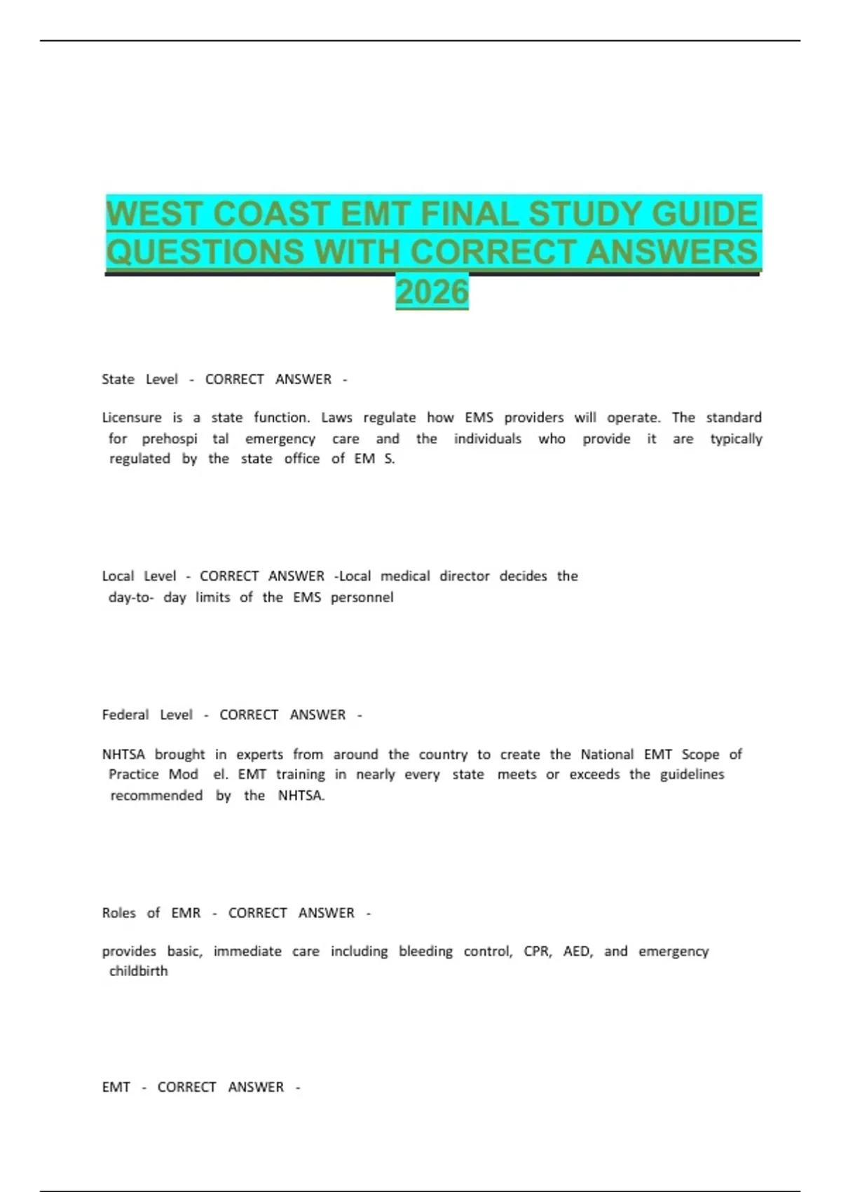 WEST COAST EMT FINAL STUDY GUIDE