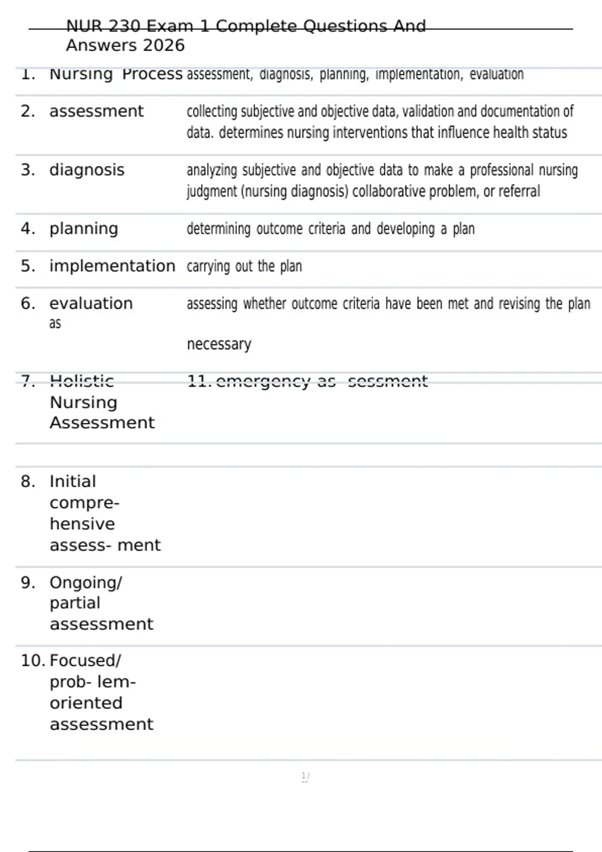 NUR 230 Exam 1 Complete Questions And Answers 2026