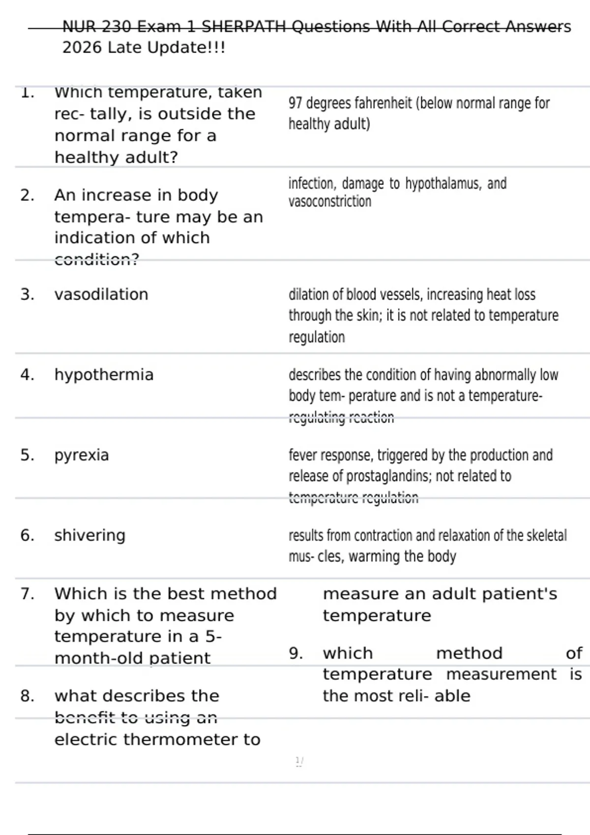 NUR 230 Exam 1 SHERPATH Questions With All Correct Answers 2026 LateUpdate!!!
