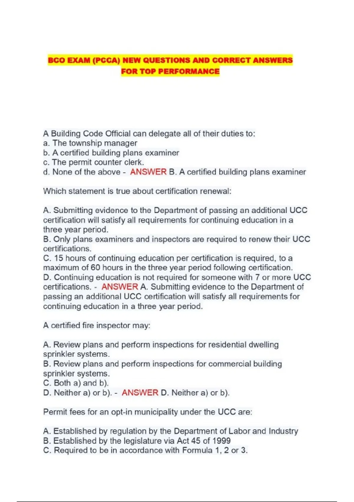 BCO EXAM (PCCA) NEW QUESTIONS AND CORRECT ANSWERS FOR TOP PERFORMANCE