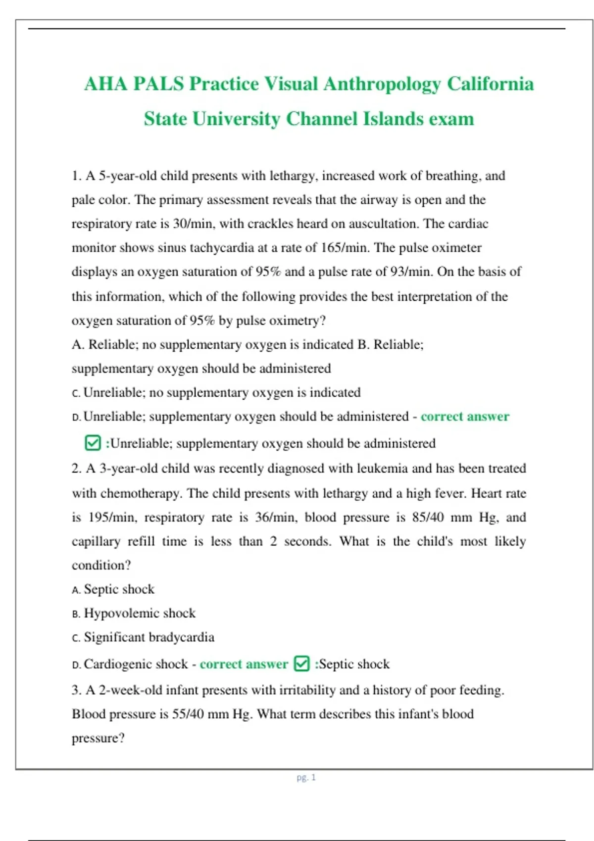 AHA PALS Practice Visual Anthropology California State University Channel Islands exam