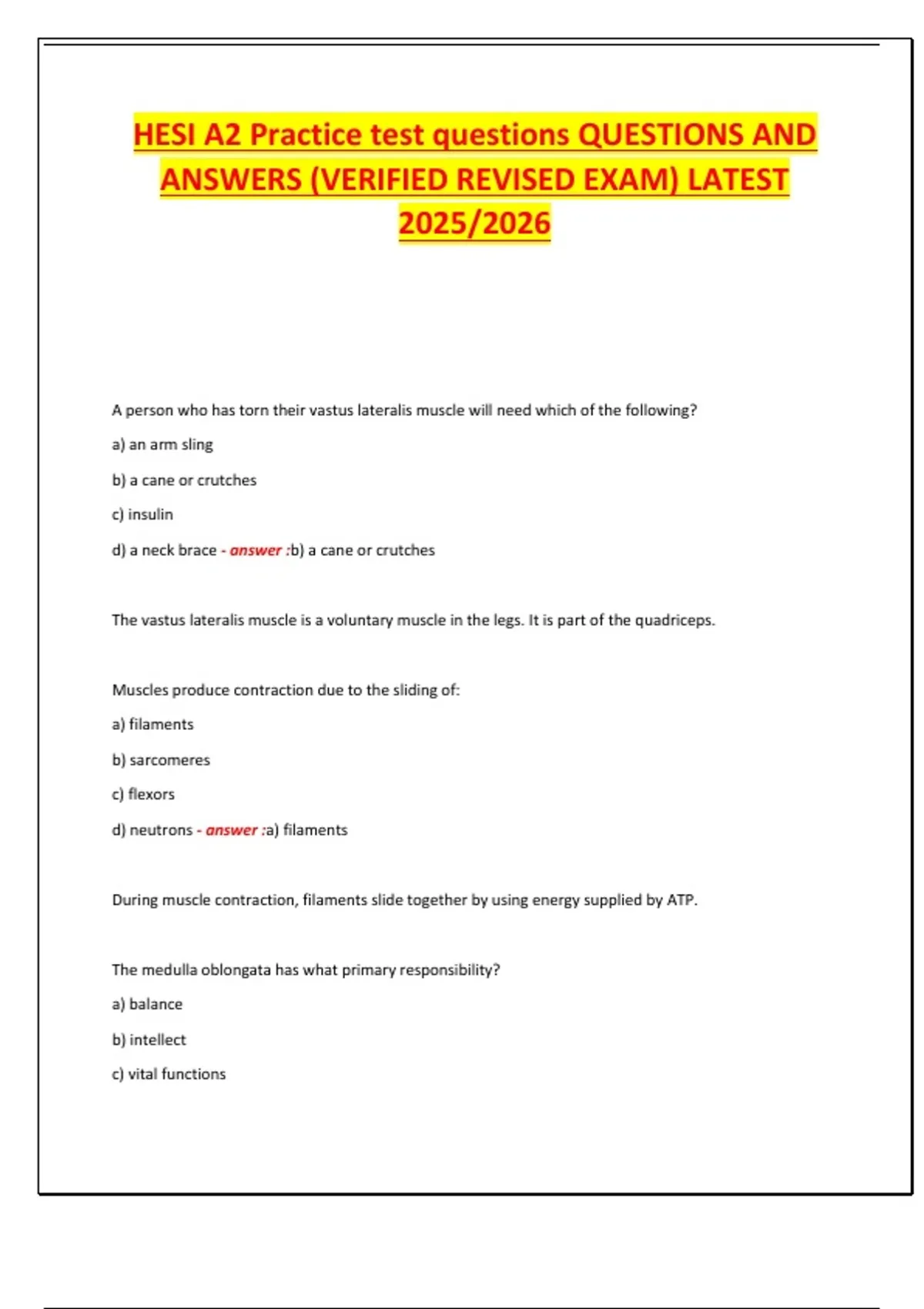 ANSWERS (VERIFIED REVISED EXAM) LATEST