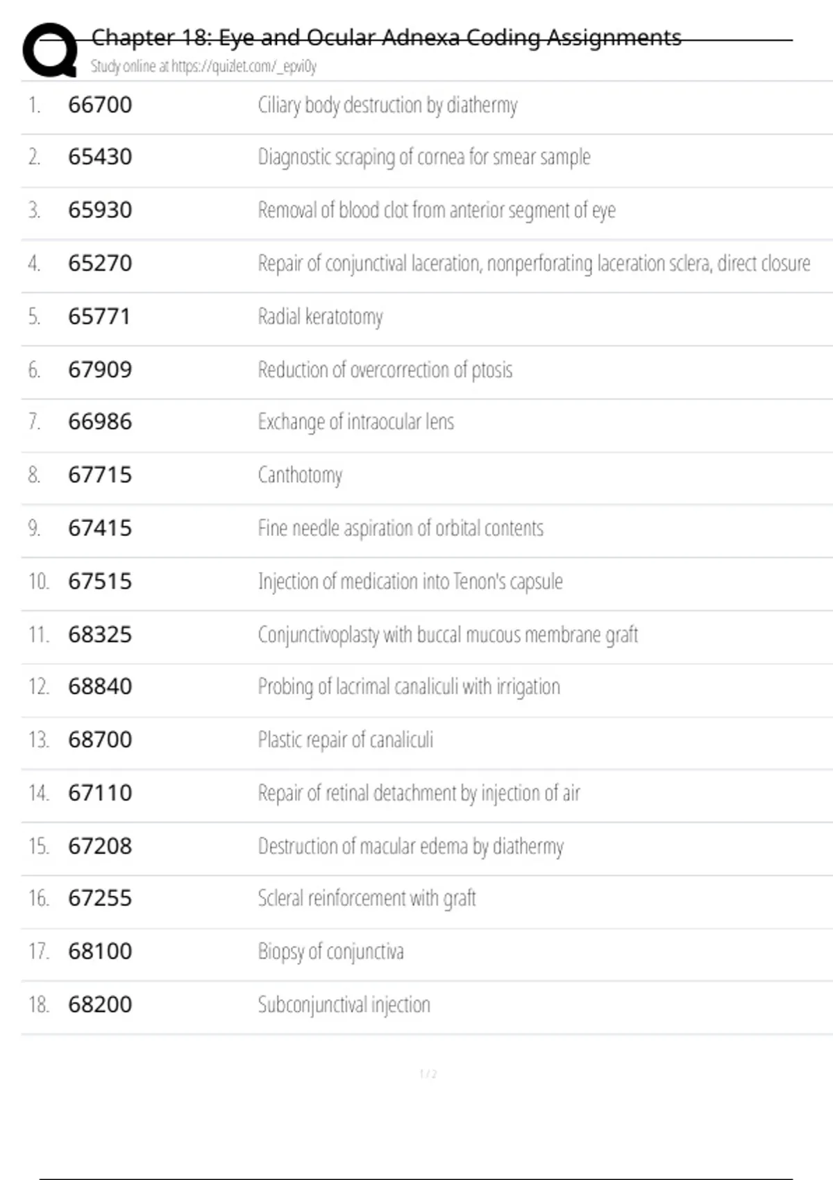 Chapter 18: Eye and Ocular Adnexa Coding Assignmen