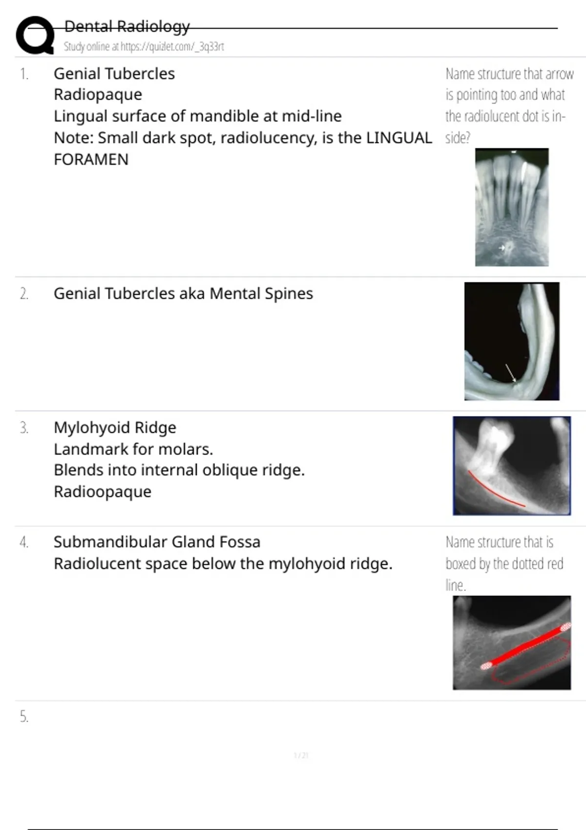 Genial Tubercles Radiopaque Lingual surface of mandible at mid-line Note: Small d