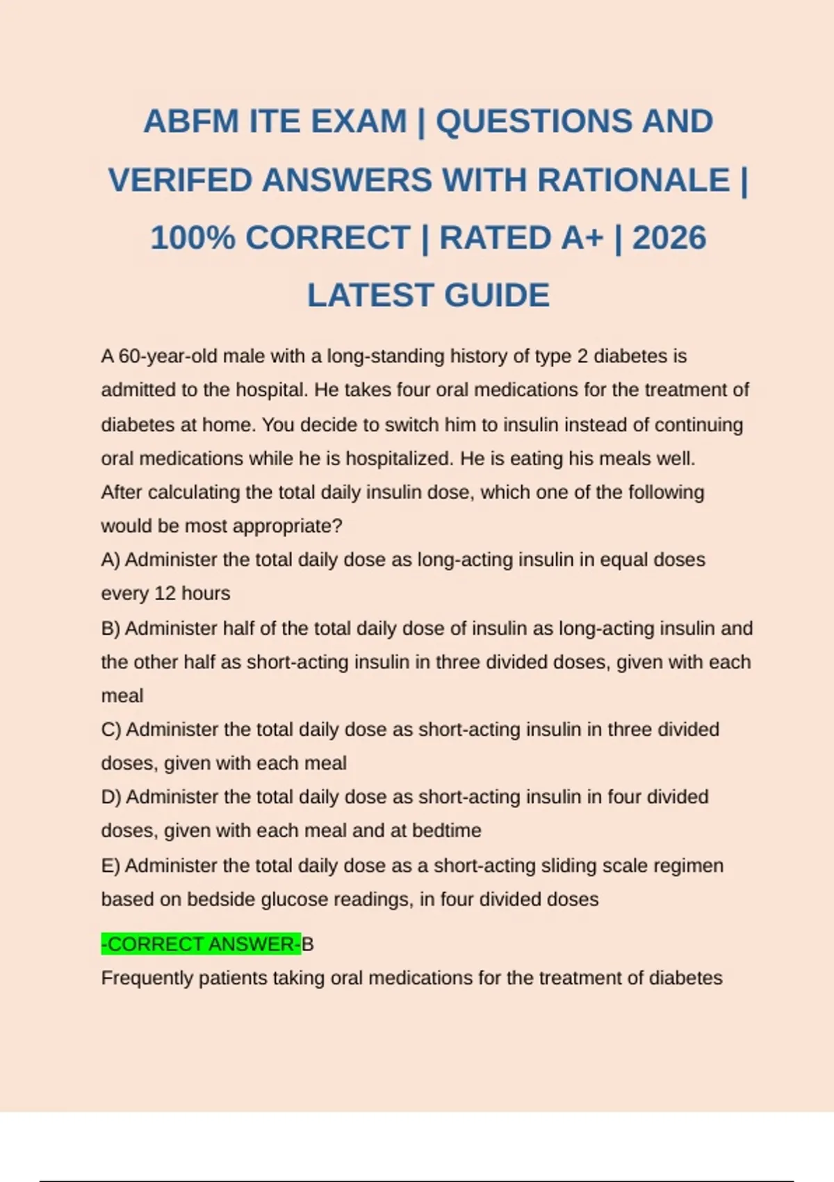 ABFM ITE EXAM | QUESTIONS AND VERIFED ANSWERS WITH RATIONALE | 100% CORRECT | RATED A+ | 2026 LATEST GUIDE ABFM ITE EXAM | QUESTIONS AND VERIFED ANSWERS WITH RATIONALE | 100% CORRECT | RATED A+ | 2026 LATEST GUIDE ABFM ITE EXAM | QUESTIONS AND VERIFED ANSWERS WITH RATIONALE | 100% CORRECT | RATED A+ | 2026 LATEST GUIDE