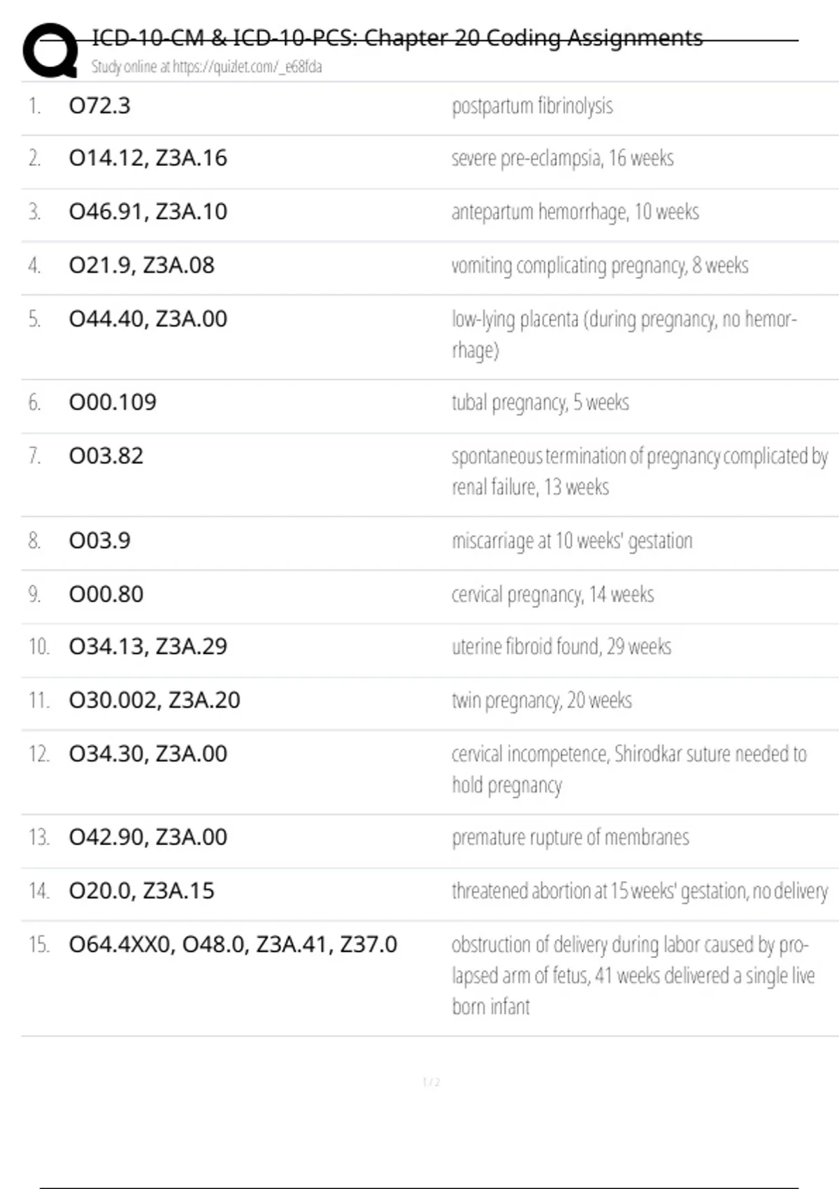 ICD-10-CM & ICD-10-PCS: Chapter 20 Coding Assignments