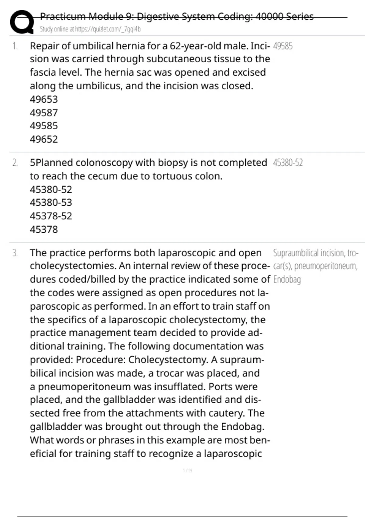 , Practicum Module 9: Digestive System Coding: 40000 Series