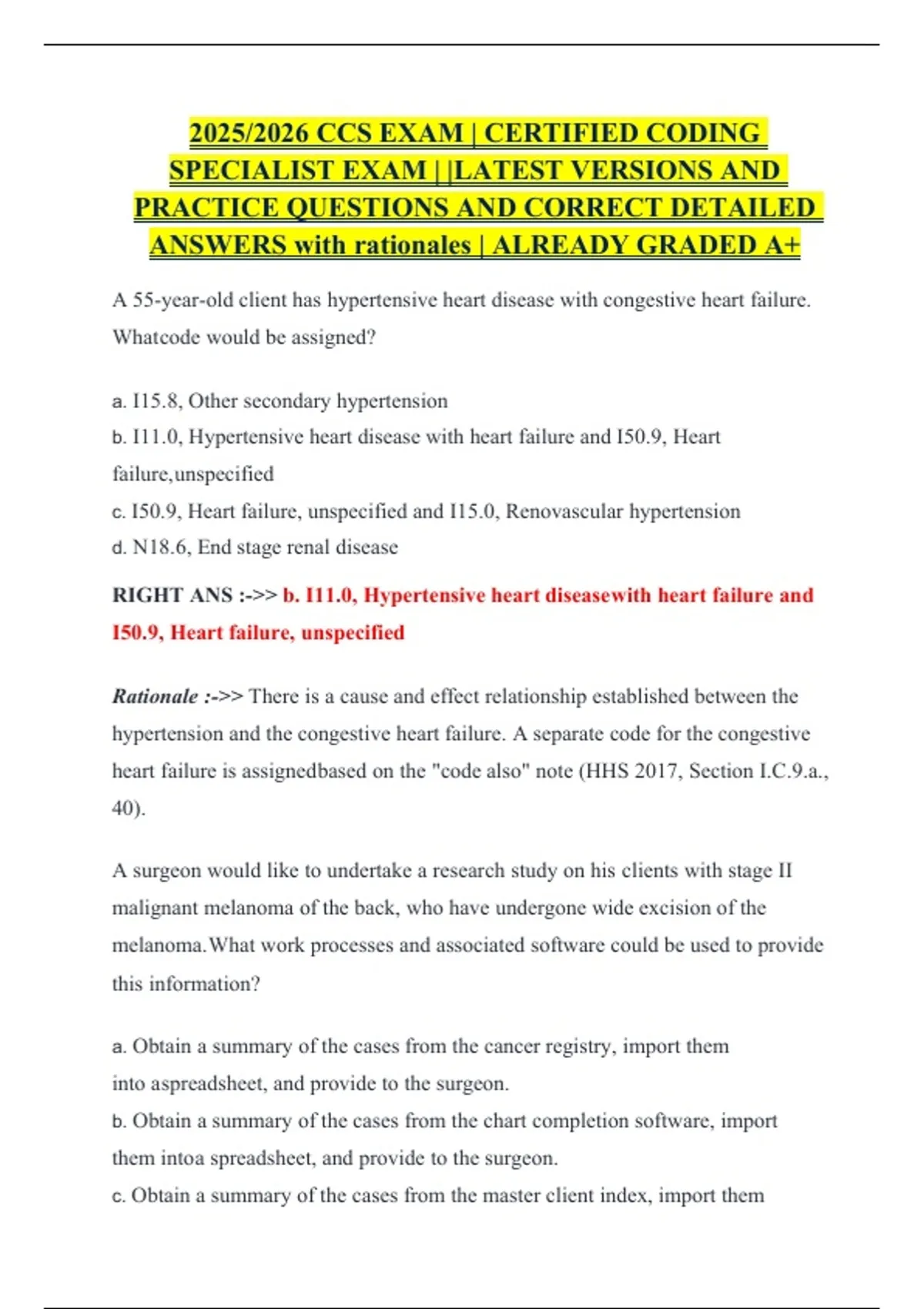 2025/2026 CCS EXAM | CERTIFIED CODING SPECIALIST EXAM | |LATEST VERSIONS AND PRACTICE QUESTIONS AND CORRECT DETAILED ANSWERS with rationales | ALREADY GRADED A+