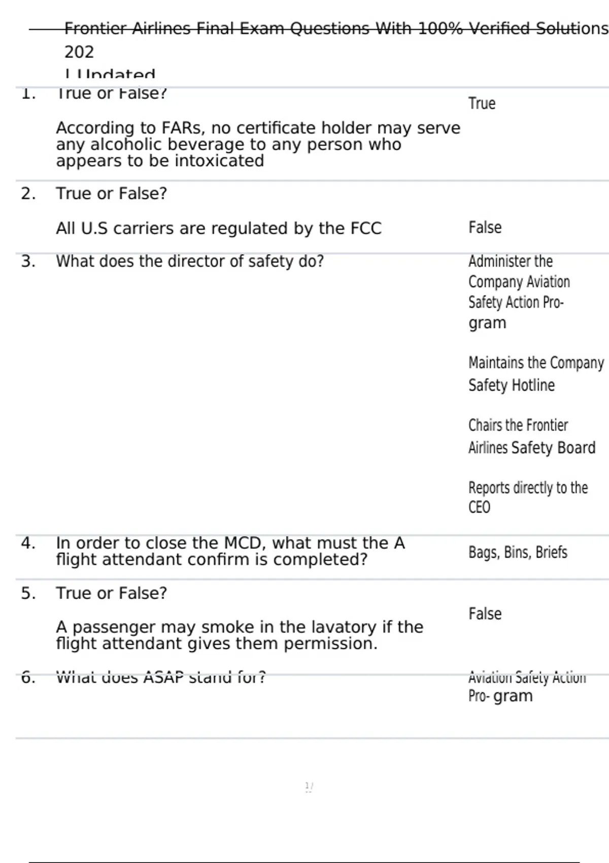 Frontier Airlines Final Exam Questions With 100% Verified Solutions | 202| Updated